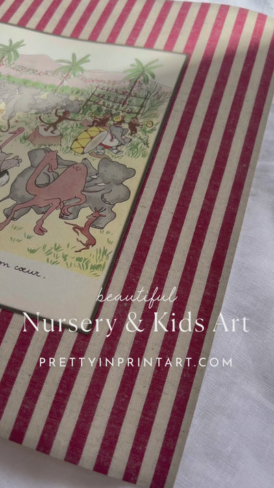 Add adventure and charm to your little one’s space with this nostalgic Babar nursery art print, featuring Babar the Elephant soaring through the sky in his little red aeroplane. Taken from the iconic Le Voyage de Babar storybook, this whimsical scene is perfect for a gender-neutral nursery, aviation-themed baby room, or vintage kids' decor.